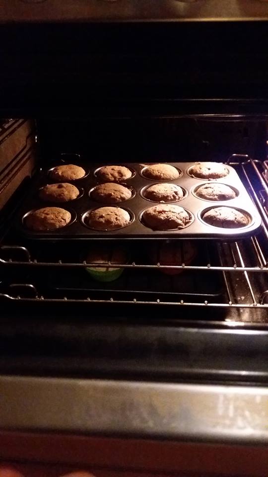 5. Nalýt směs do plechu a péct 35-45 min, zkontrolujte po 35 min a pokud je párátko čisté, muffiny jsou hotové, pokud se na něj těsto lepí, péct dalších 10 min.